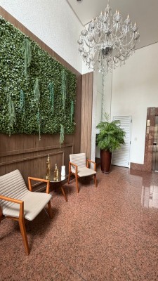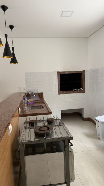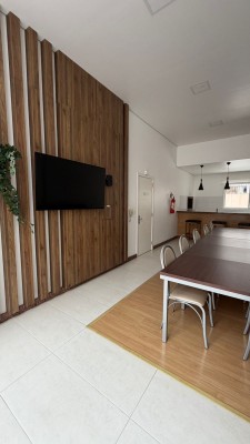 Apartamento com 01 Suíte, 01 Dormitório, Sala dois ambientes, Cozinha, área de serviços e Banheiro Social. Possui Sacada com Churrasqueira, e um Box de Garagem.