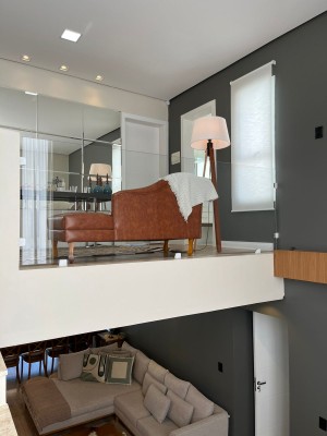 Na Parte Superior: Suíte com sacada frente e closet, 01 Dormitório com sacada que tem vista para os fundos, Banheiro, Sala de leitura e área comum de descanso.
